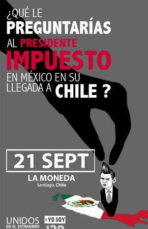 Los activistas de #YoSoy132Chile orquestaron una protesta contra el presidente electo de México, Enrique Peña Nieto, quien realiza una gira en Latinoamérica.